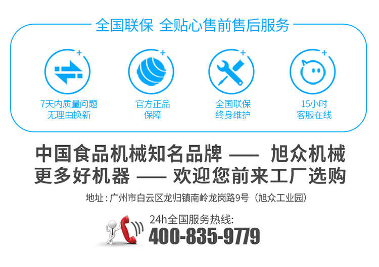 廣州旭眾食品機(jī)械有限公司是一家集科研開發(fā),生產(chǎn)設(shè)計(jì),營(yíng)銷服務(wù)為一體的現(xiàn)代化生產(chǎn)企業(yè)?,F(xiàn)代化生產(chǎn)車間,精湛制造技術(shù),所產(chǎn)機(jī)械歷經(jīng)市場(chǎng)重重考驗(yàn),不斷贏得海內(nèi)外客戶的贊譽(yù)。