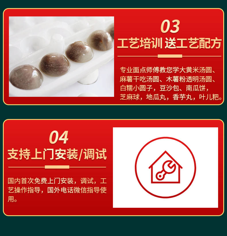 VFD-4000型湯圓自動(dòng)成型排盤(pán)一體機(jī),本機(jī)依外皮及餡料的種類(lèi)不同,可制作湯圓、豆沙包、南瓜餅、奶黃包、含餡饅頭、玉兔包等包餡食品的設(shè)備。工作效率高、相當(dāng)于8-12個(gè)工人同時(shí)制作湯圓,真正低收入、高收效、省錢(qián)省工。適合用于各種工作場(chǎng)所。免費(fèi)上門(mén)安裝,贈(zèng)送工藝